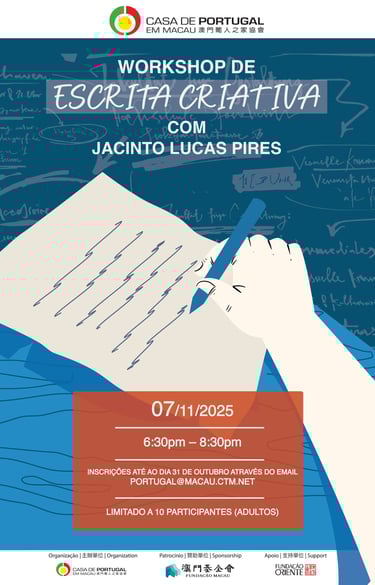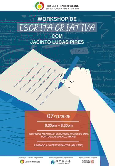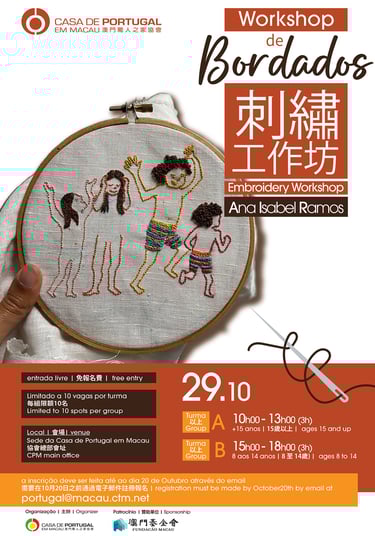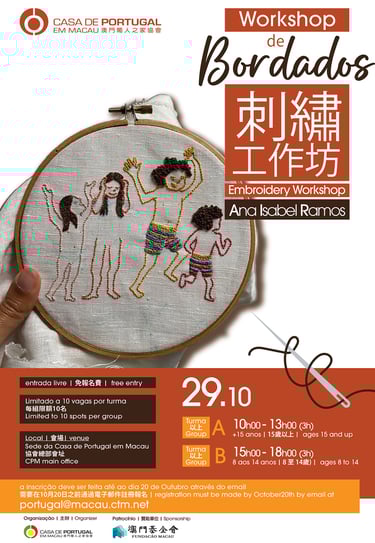 工作坊由澳門基金會贊助,將於10月4日及5日在澳門葡人之家協會工藝美術學校舉行。每場限5人名額,需提前通過電郵 portugal@macau.ctm.net 報名。